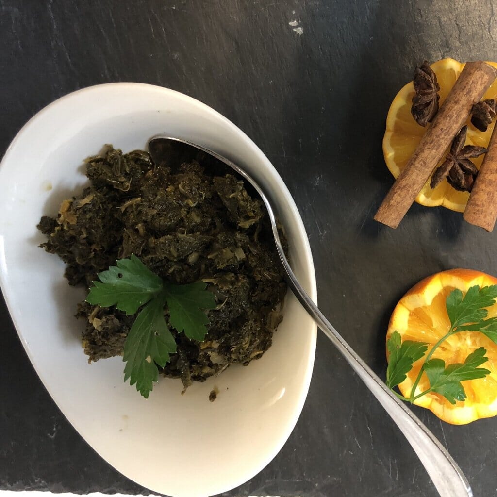 (Traditional German-style kale stew with bacon)